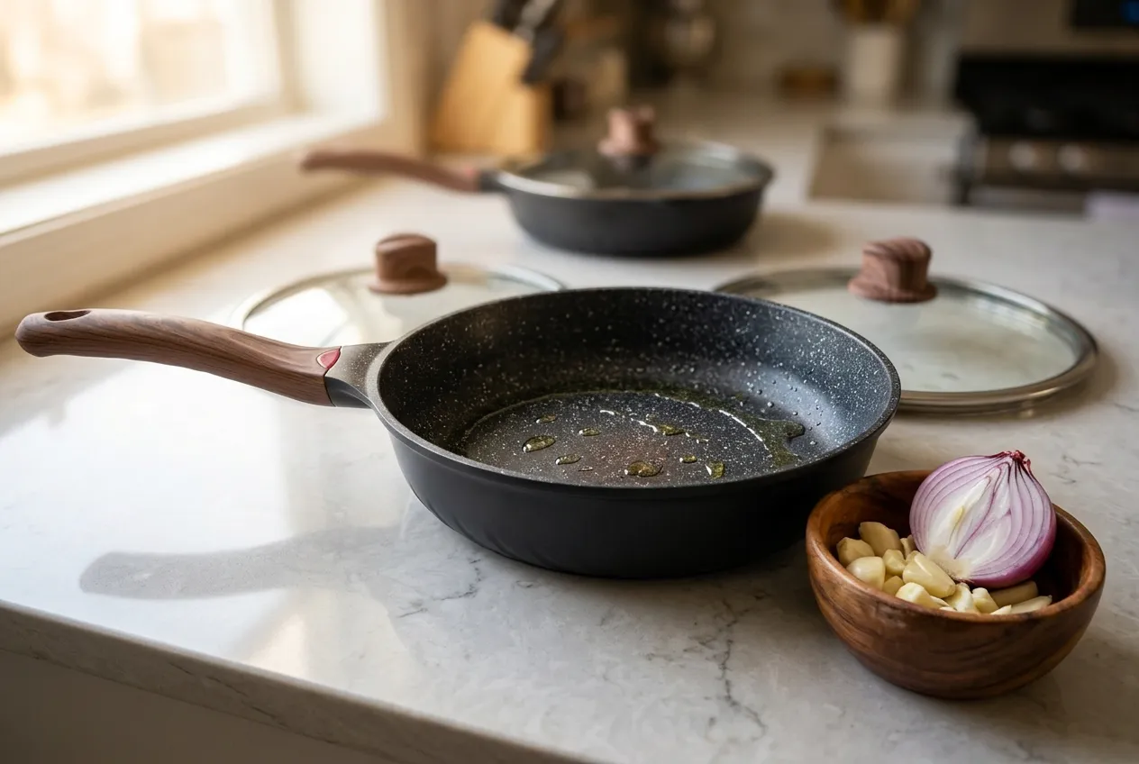 Cover all your bases with this comprehensive 12-piece set that provides the right tool for every frying, sautéing, or steaming task. Built with a heavy-duty aluminum core and premium nonstick coating, these pieces offer consistent heat and effortless food release. The inclusion of silicone protectors and handy utensils ensures your cookware remains in top shape, making this an ideal foundation for any modern kitchen.
